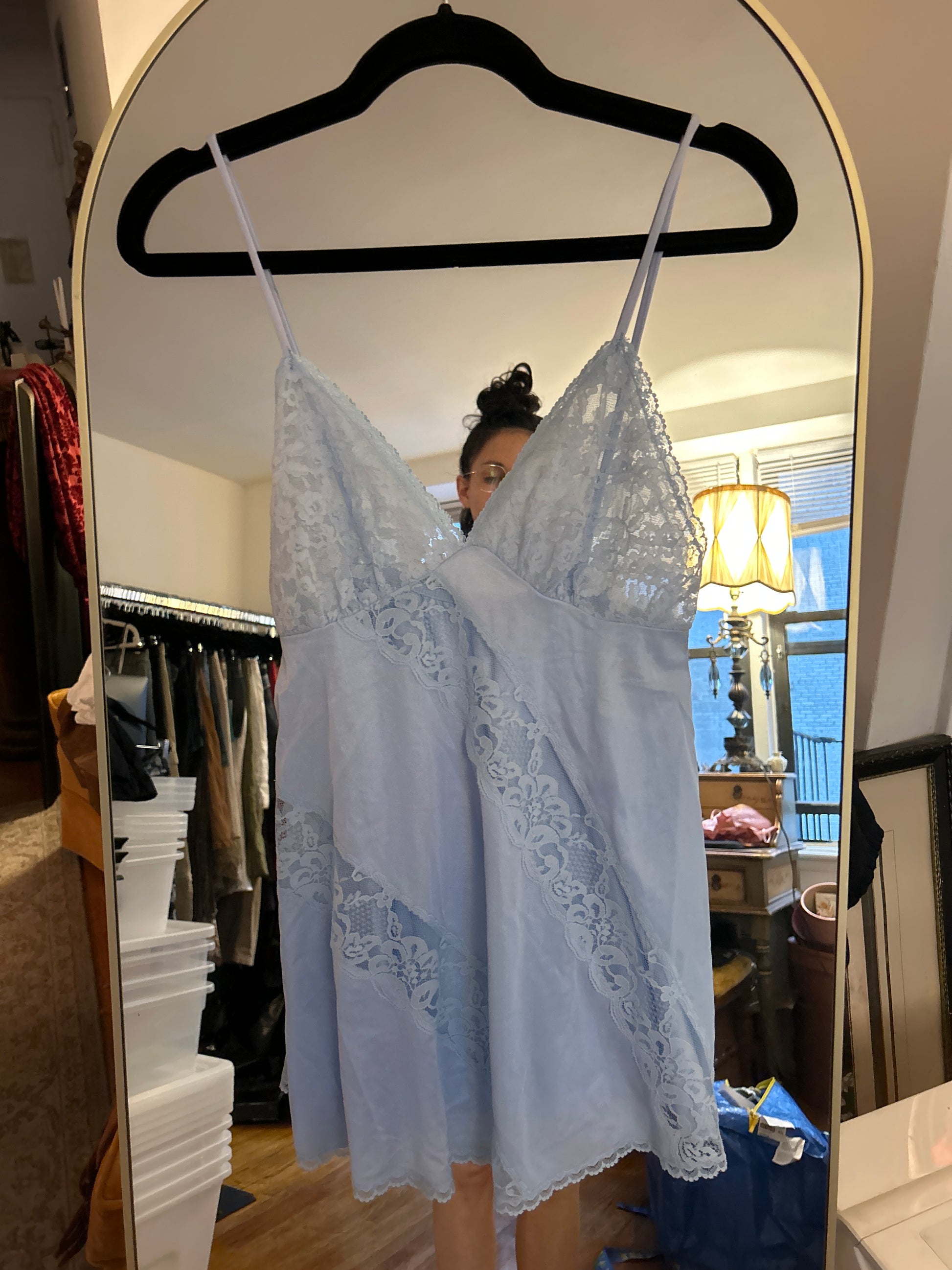 Blue tank with lace detail